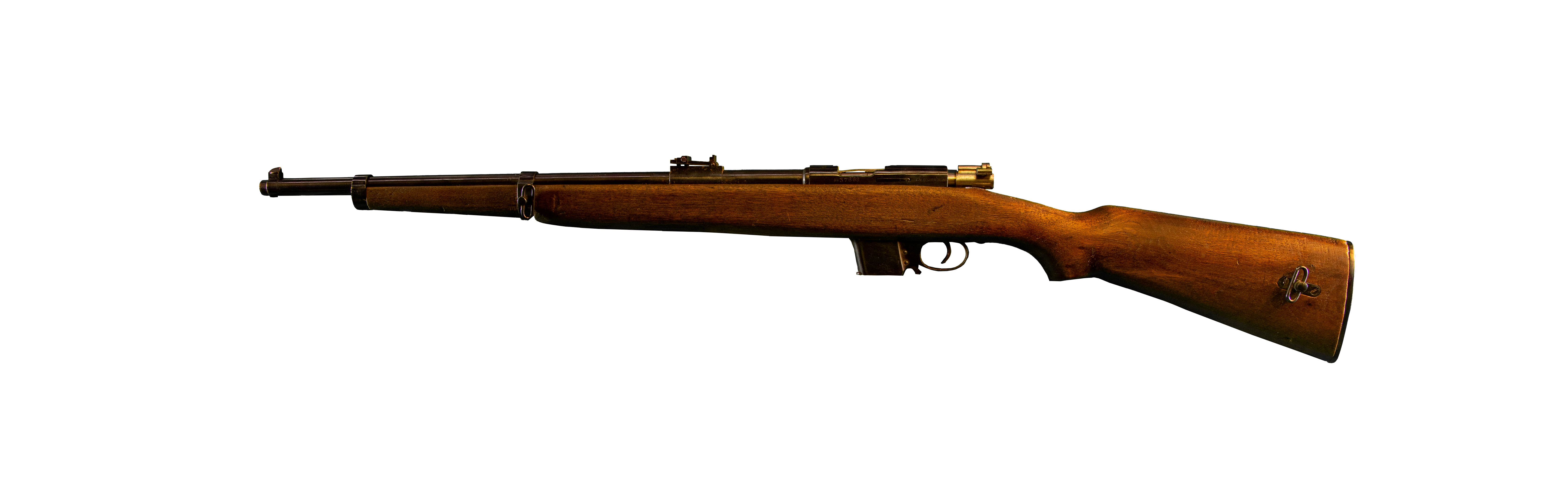 Zeldzaam karabijn, geliefd door verzamelaars en door schutters gezien de lichte terugstoot van dit pistoolkaliber karabijn.