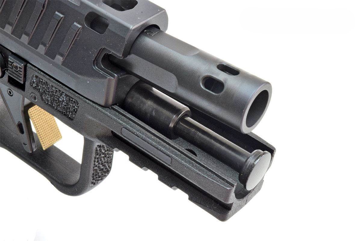 De kern van de METE MC9 PRIME bestaat uit een nieuw verbeterde gecompenseerde loop en slede, voorzien van een geïntegreerde expansiekamer. Deze constructie zorgt voor hogere nauwkeurigheid en verminderde mondingsopslag, wat resulteert in optimale controle en snellere, nauwkeurigere vervolgs schoten. Hierdoor is dit pistool uitermate geschikt voor zowel defensief gebruik als recreatief schieten.