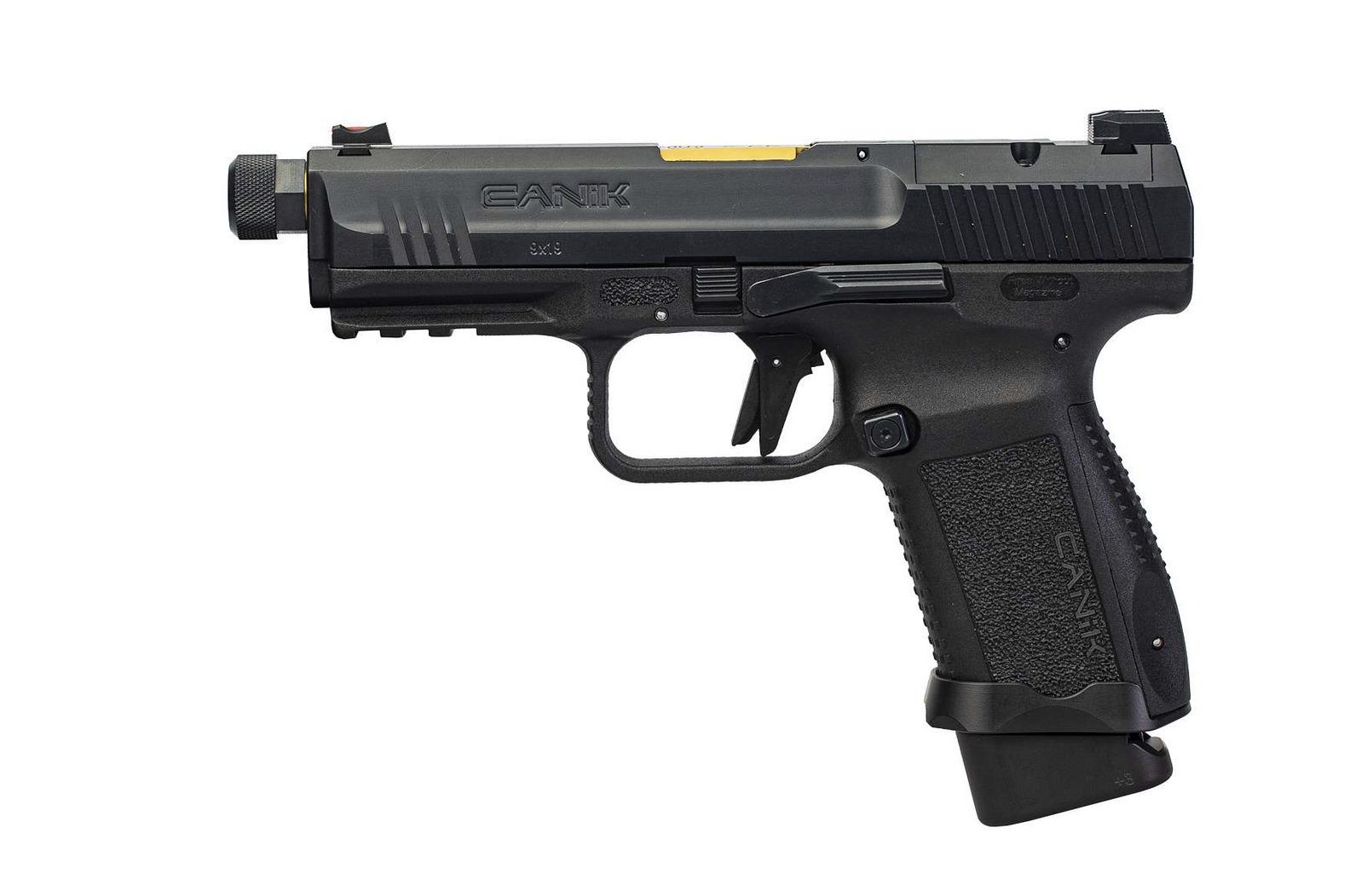 De Canik TP9 Elite Combat is een high-performance pistool dat speciaal is ontwikkeld voor zowel tactische toepassingen als sportief schieten.. De SAI goudkleurige loop met schroefdraad (threaded barrel) maakt het pistool niet alleen een visuele eyecatcher, maar biedt ook functionele voordelen, zoals de mogelijkheid om accessoires zoals een compensator te monteren.