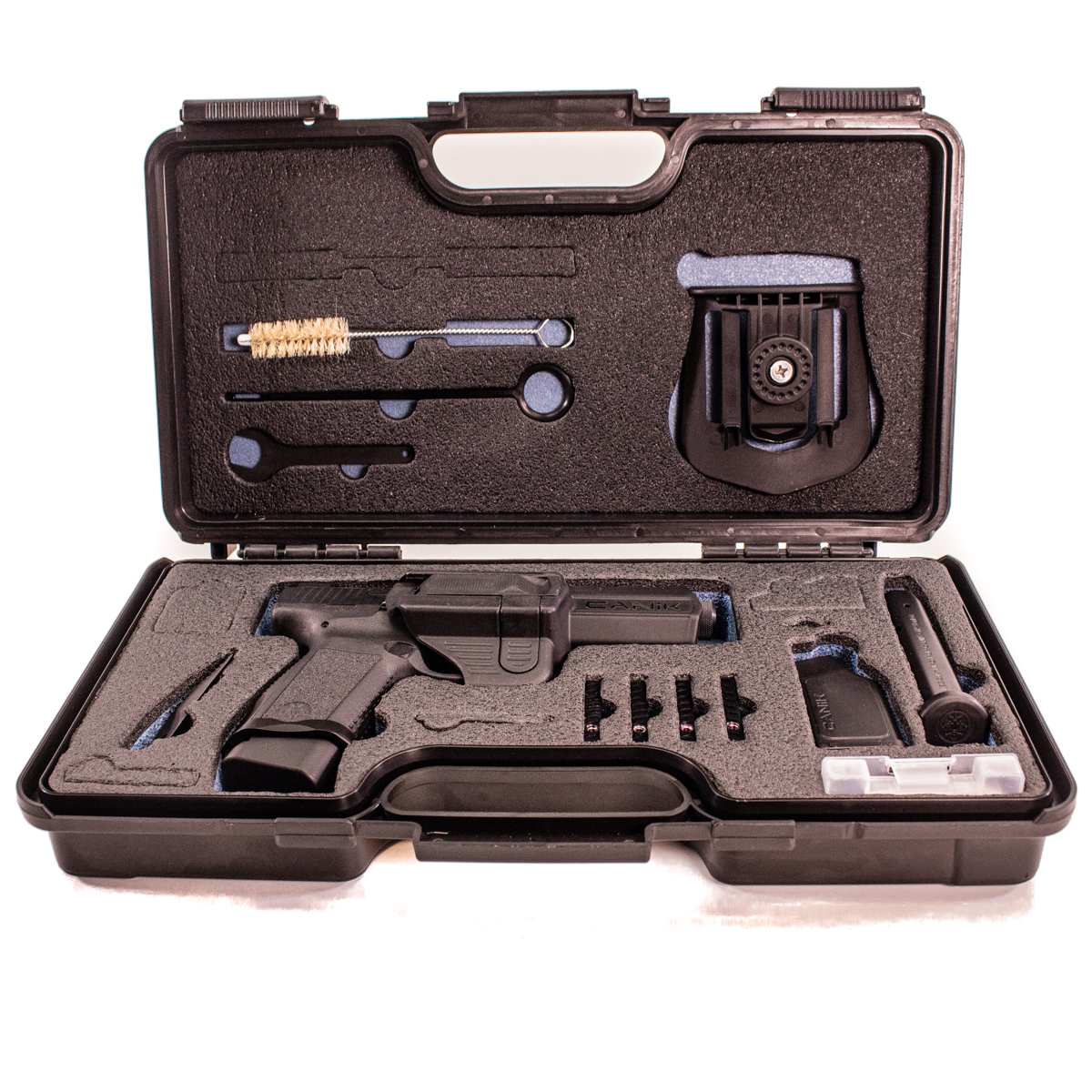 Komt in kunstof koffer met een verwisselbare backstrap, 4 optic ready adapter plates, extra lader, holster, hulplader, klein materiaal, poetsmateriaal.