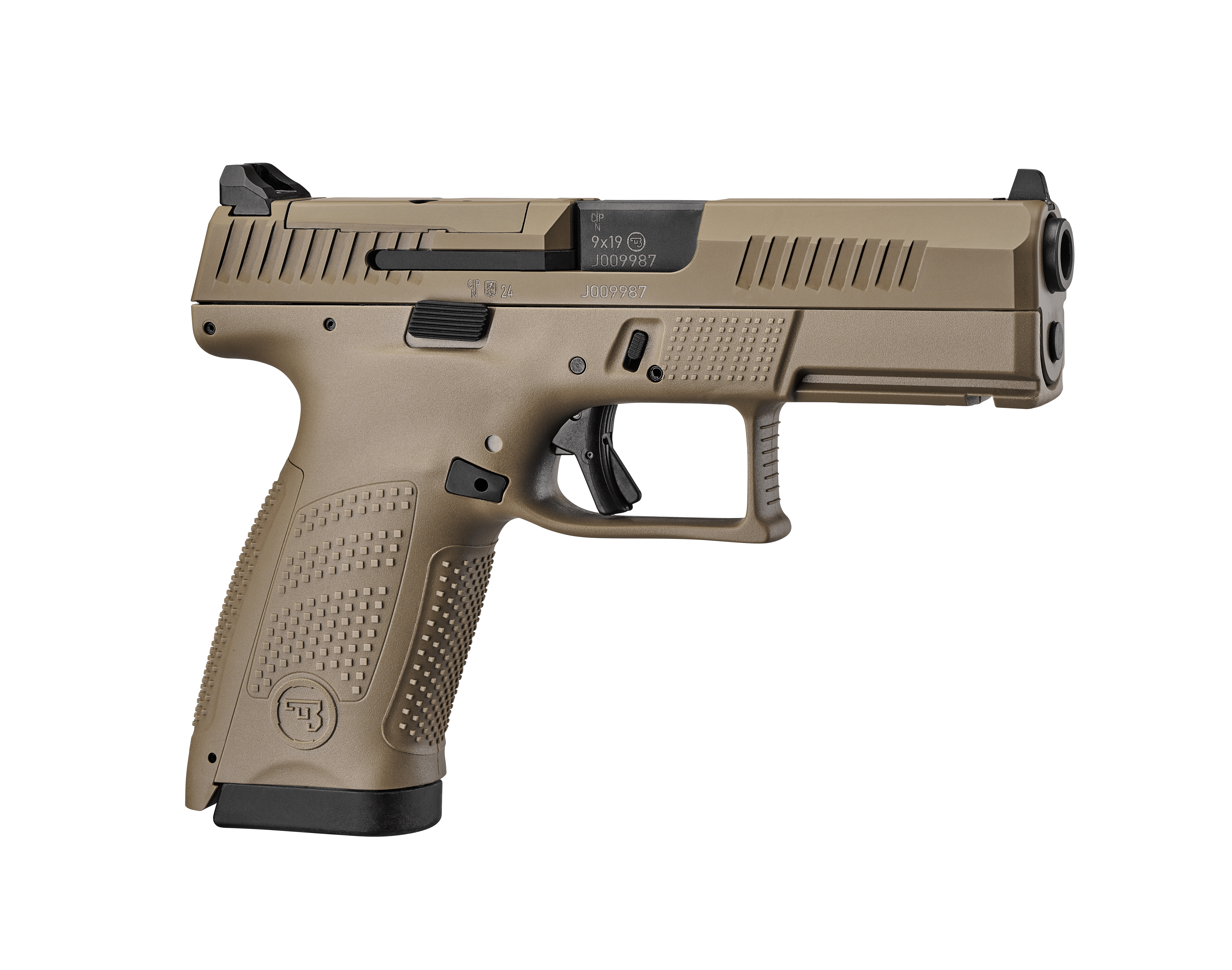 Extra textuur op het frame boven de trekkerbeugel ter grip voor de ondersteundende handduim of als duidelijke positie voor de trekkervinger op veilig te houden